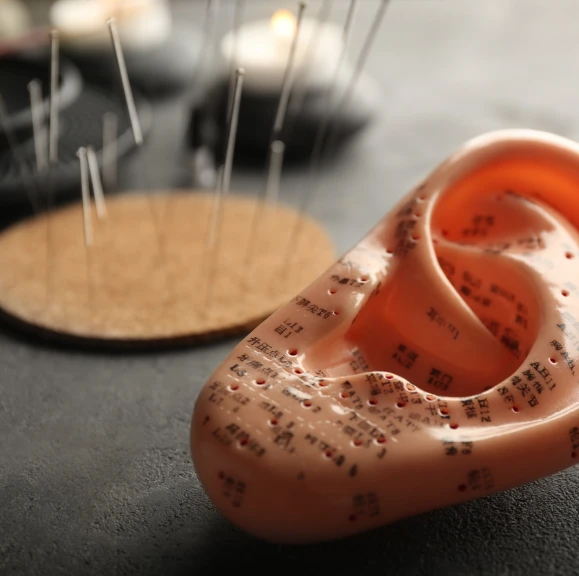 A Auriculoterapia é uma técnica que consiste na aplicação de estímulos, como sementes e cristais, em pontos específicos da orelha.